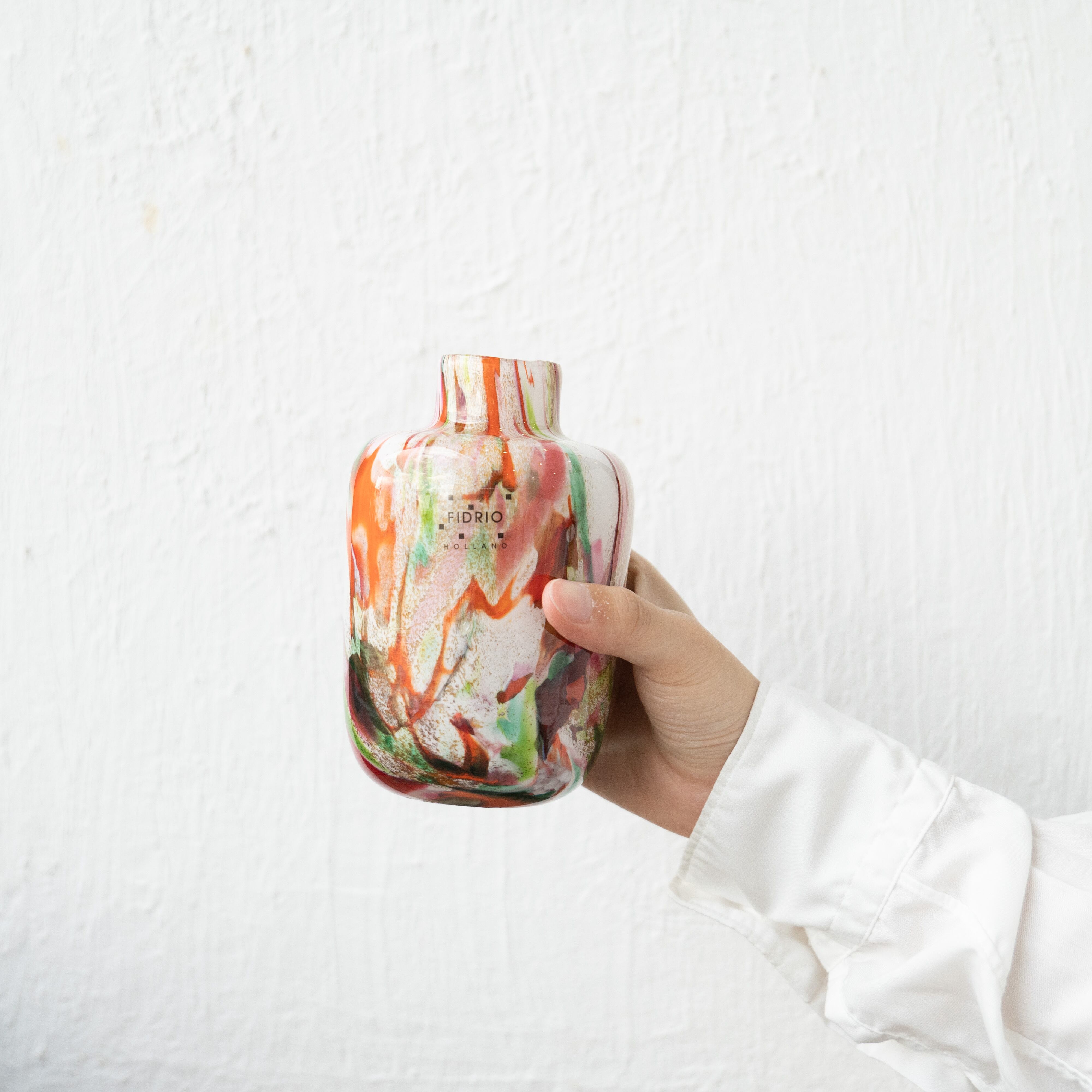 FIDRIOは、プロのフローリストだったマルセルとダニエラがはじめたオランダ発のプロダクト。伝統的なガラス工芸の技術を使った、美しい吹きガラスが織りなす世界観は、どんな空間、インテリアにも完璧にフィットします。ときにはオリエンタル、エキゾチック、さらには宇宙空間までもイメージさせる自由でユニークなコレクションは、花器に限らずインテリアアイテムとしても魅力的。使う者のインスピレーションの幅を広げてくれます。