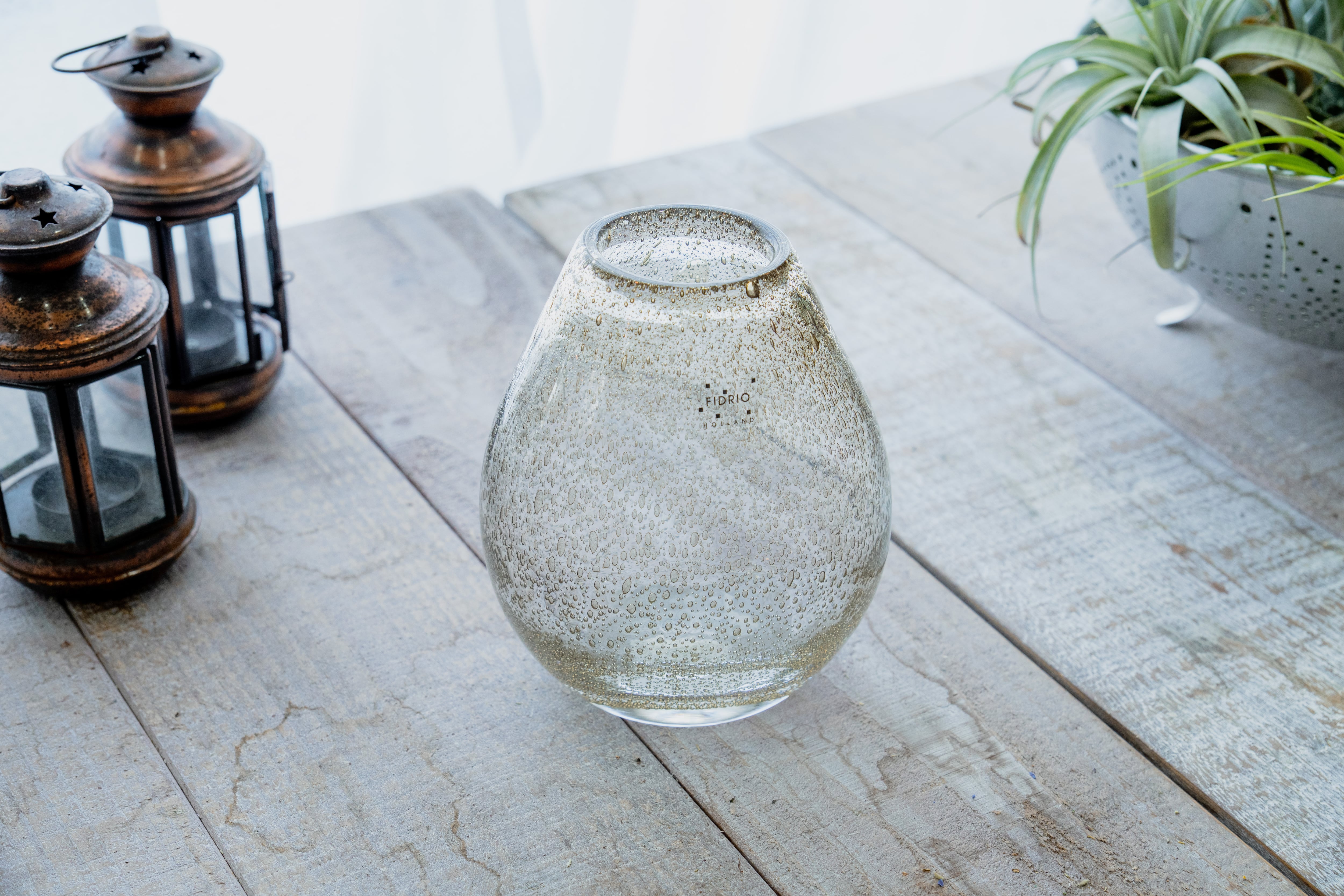 FIDRIOは、プロのフローリストだったマルセルとダニエラがはじめたオランダ発のプロダクト。伝統的なガラス工芸の技術を使った、美しい吹きガラスが織りなす世界観は、どんな空間、インテリアにも完璧にフィットします。ときにはオリエンタル、エキゾチック、さらには宇宙空間までもイメージさせる自由でユニークなコレクションは、花器に限らずインテリアアイテムとしても魅力的。使う者のインスピレーションの幅を広げてくれます。